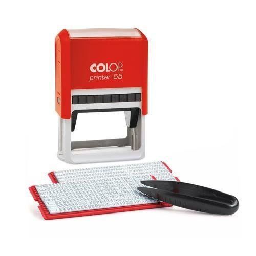 Colop Printer C 55 Self Inking Rubber Stamp 60mm X 40mm | Stamp Store Set composto da 1 Printer 55 con cuscino colore incorporato, 1 tipo classificazione 3,5 mm con 320 tipologie e 25 pictos, 1 tipo classificazione 2,5 mm con 360 tipologie e 20 pictos, 1 pinzetta Tipo classificazioni per riporre non libero tipologie con coperchio trasparente, protegge da perdita e polvere For your oblong stamping needs the COLOP (formerly 2000 Plus) Printer 55 custom stamp is the perfect fit for your self-inking stamp needs. Impression measures 1-3/8in. x 2-3/8in. (40x50mm Fino a 10 linee indossa Bar, max 27 tipologie per riga