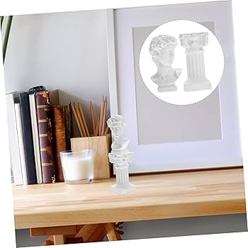 HOMSFOU 1 Set Greek David Bust Statues Roman Pillar Column Resin Figurine Base Pedestal Stand Mini Greek Mythology Greek Sculpture Wedding Table