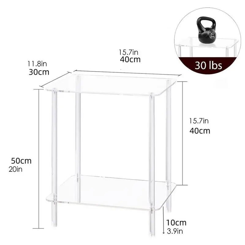 Specifica: Materiale: acrilico Tabella di formato: 40 cm x 20 cm x 50 cm/15,75 pollici x 7,87 pollici x 19,69 pollici Il pacchetto Include: 2 Piatti Ovali8 aste acriliche4 cuscinetti antiscivolo Nota: Si prega di consentire lievi errori di 1-2 cm di differenza dovuti alla misurazione manuale. Grazie alle sue dimensioni compatte, può essere comodamente posizionato al letto o al divano. I migliori prezzi per Comodino Trasparente tra i negozi italiani online, aggiornati ogni giorno! Facile da usare | Gratis | Recensioni affidabili | Trova la tua offerta adesso 191 Tavolino Tavolino / Comodino Fumé Trasparente Design Moderno Mimi,made In Italy Acrilico Trasparente Design a 2 livelli: questo comodino a 2 livelli ha un design minimalista e moderno, dimensioni 40 cm x 20 cm x 50 cm/15,75 x 7,87 x 19,69 pollici. 【Ampia applicazione】: il tavolino in acrilico si adatta vari ambienti , camere da letto, soggiorni, , uffici ecc. - 【Ampia applicazione】: il tavolino in acrilico si adatta vari ambienti , camere da letto, soggiorni, , uffici ecc. 【Materiale Premium】: questo tavolino multifunzionale in acrilico trasparente è realizzato in materiale acrilico, facile da montare e adatto a qualsiasi spazio. - 【Design salvaspazio】: il tavolo per bevande in acrilico è l'ideale per coloro che desiderano massimizzare il proprio spazio.