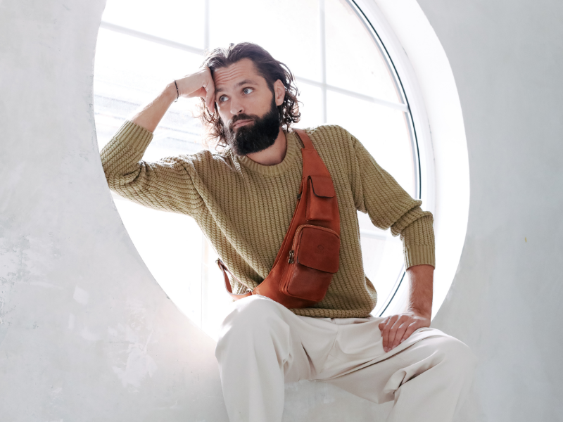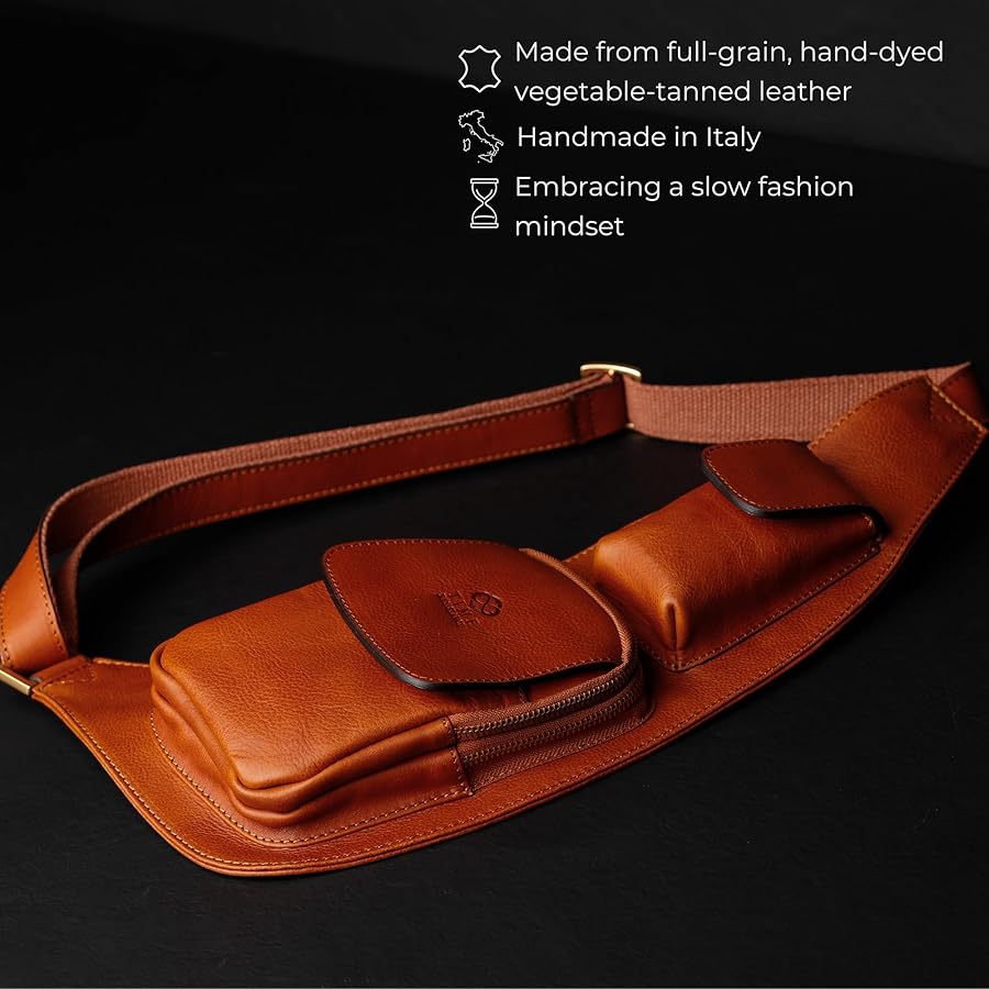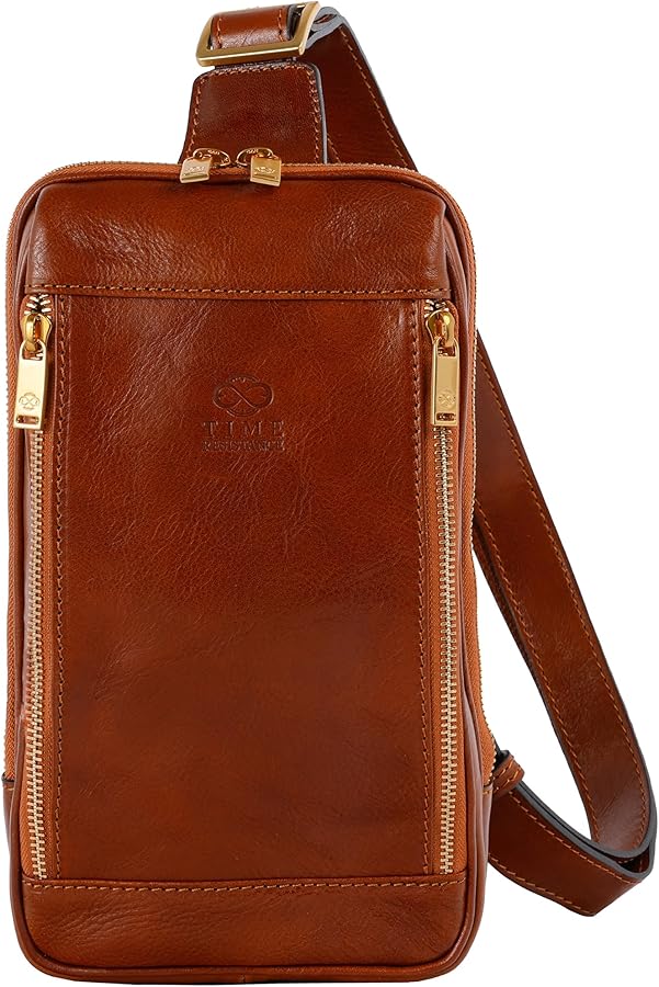 Time Resistance Zaino Monospalla Uomo In Vera Pelle - Comodo Marsupio Realizzato In Italia Da Esperti Artigiani - Zainetto Piccolo Con Tracolla Regolabile (Marrone Cognac) : Amazon.it: Moda