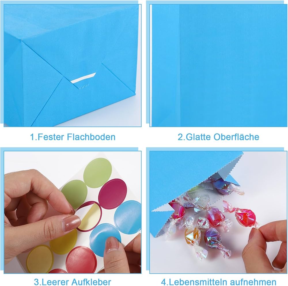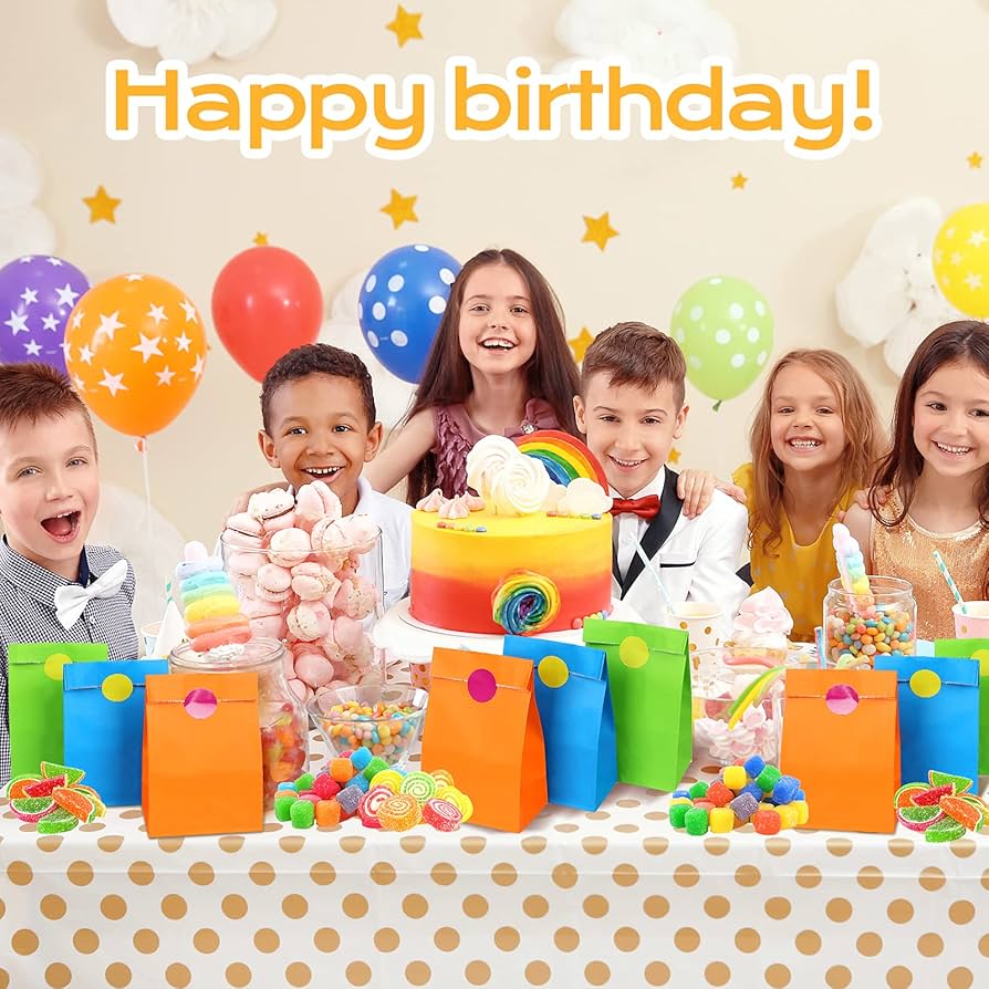 Regalini Fine Festa Compleanno Bambini 50 Pezzi Sacchettini Compleanno Bambini | Sacchetti Regalo Sacchetti Compleanno Bambini CONSEGNA DEL PACCHETTO - Nella confezione sono presenti 50 sacchetti compleanno bambini di carta da 9 x 6 x 18 cm/3,5 x 2,4 x 7,1 pollici e 60 adesivi colorati che puoi utilizzare insieme. I bambini si divertiranno alla festa di compleanno con questi divertenti sacchetti regalo . ?Regali ideali: ottimi per il fai da te, l'artigianato, la decorazione e l'imballaggio, i souvenir, i compleanni, il Natale e la Pasqua. È possibile combinare sacc MATERIALE - Sacchetti regalo compleanno bambini è realizzato in carta kraft, che è spessa, rigida, non facile da rompere e può essere riutilizzata. Applicazione - Puoi utilizzare sacchetti caramelle compleanno bambini per confezionare caramelle, biscotti, piccoli regali, ecc. e darli a bambini, amici per compleanni, feste per bambini, riunioni, Pasqua, ecc. La forma a fondo piatto è perfetta per riempire popcorn, caramelle, biscotti e altro ancora. BELLISSIMO - Sacchetti carta caramelle adotta un design a pois arcobaleno, carino e bello.