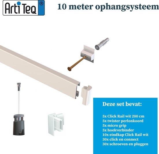 Kit Cimaise Complet Artiteq Click Rail Pour Suspension De Tableaux 2 M - Peut être Peint