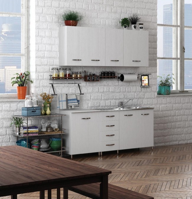 Argonauta Italia Pensile Componibile Per Cucina Bianco Frassinato 2 Ante Cm 80x32xH 72