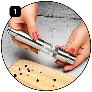 ProfiCook – massima qualità e design innovativo. Il cilindro macinato in acciaio inox di alta qualità trita e macina i tuoi ingredienti. gt; Ricarica facile > Rifinito e compatto > Capacità: circa 30 ml. Dosatori e contenitori > Macinapepe. sale, pepe, acciaio, vari, stantuffo. SEZIONE / FAMIGLIA Cassa Pc Profi Cook - Pc-psm 1160 Set Macinapepe E Macinasale Composto Da 2 Macinini, Cilindro In Acciaio Inox Di Alta Qualità - EPRICE Macina Sale L'alloggiamento leggero e compatto consente di ricaricare comodamente le spezie desiderate: Basta aprire l'alloggiamento. Semplice e comodo: grazie al pratico utilizzo con una sola mano (pestello a molla) è possibile lavorare in modo rapido e comodo le spezie desiderate. I macinini possono contenere circa 30 ml e con il suo corpo in acciaio inox di alta qualità e il design senza tempo sono un elemento di attrazione speciale per ogni cucina. Chiudere il macinino e il gioco è fatto. Il set di macinapepe e macinasale PC-PSM 1160 di ProfiCook viene fornito grazie al funzionamento puramente meccanico senza batterie e, grazie al pratico funzionamento con una sola mano (pestello a molla) consente una lavorazione rapida e comoda delle spezie desiderate.