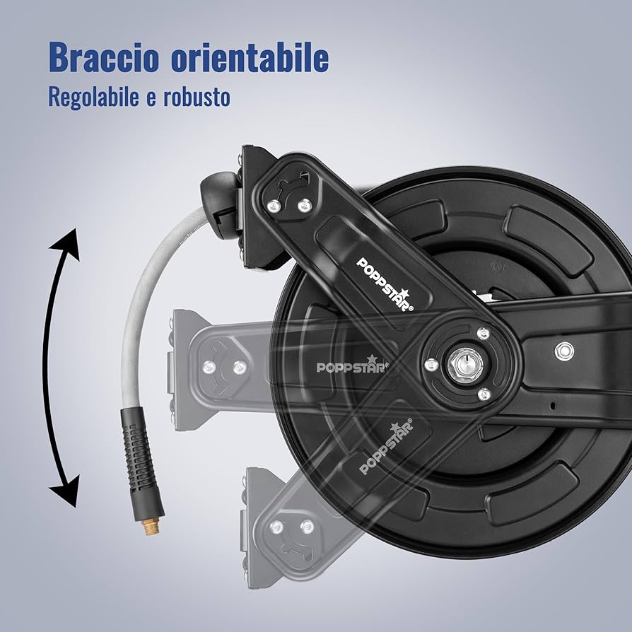 QUALITÀ ELEVATA: l'alloggiamento in plastica dell'avvolgitubo per aria compressa è robusto e può resistere anche alle condizioni più difficili. I raccordi per tubi flessibili da 1/4'' sono realizzati in alluminio resistente. 19 aghi resistenti dal diametro di 3mm per la rimuozione di vernice, ruggine & tanto altro pressione regolabile Inoltre, la pressione può essere regolata con semplicità tramite il raccordo in dotazione. Non solo offriamo una vasta gamma di accessori per la casa, ma anche un ampio assortimento di mobili per interni ed esterni e diversi strumenti e accessori da giardino. Avvolgitubo Aria Compressa Avvolgitubo Ad Aria Compressa Pneumatico Con 100 Mt Di Tubo Con Freno Arrotolatore Tubo Aria Compressa La pressione d'esercizio è facilmente regolabile tramite il tappo di raccordo in dotazione. La pressione massima di esercizio dell'avvolgitubo è di 12 bar. INCL. L'ideale per rimuovere ruggine e residui di sporco da superfici metalliche. avvolgitubo compressa aria am80 interno mod zeca tubo metri rami Dati tecnici avvolgitubo & fornitura: Supporto a parete rimovibile testina di ricambio facilmente sostituibile Lo scrostatore è adatto anche per eliminare le scorie più ostinate di saldatura, gesso, vernice o cemento. DATI FORNITURA: 1x avvolgitubo automatico, 1x supporto a parete, 1x tubo flessibile per aria compressa da 10 m, 1x raccordo per tubo, 1x sfera di bloccaggio, 2x chiavi a brugola, 1x giunto ad attacco rapido, 1x ablatore ad aghi pneumatico, 1x testa di ricambio, 1x attacco per aria compressa da 1/4'' 3. avvitatore ad impulsi 4. cucitrice pneumatica Vantaggi del prodotto ABLATORE AD AGHI: dotato di ben 19 aghi pneumatici robusti, l'ablatore ad aghi di Monzana è l'utensile ideale per rimuovere vernice, smalto, ruggine e altri rivestimenti dalle superfici metalliche solide. In questo modo potrete pulire, scrostare e lucidare con semplicità ad esempio una ringhiera prima di verniciarla nuovamente. DETTAGLI ABLATORE: con una velocità pari a 4000 giri al minuto e una pressione di esercizio di 6,3 bar, l'ablatore è in grado di rimuovere anche la ruggine più ostinata. Cosa aspettate? Lasciatevi ispirare dal marchio Monzana! AVVOLGITUBO VERSATILE: il nostro tubo flessibile per aria compressa di Monzana è dotato di un pratico avvolgitubo automatico che offre la massima comodità di utilizzo per lavori da officina, a casa o in garage.