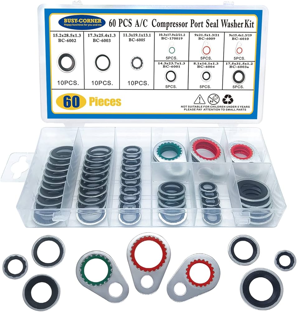 Guarnizioni Per Compressori Per Sistema A/C, Kit Di Guarnizioni Per Porta Compressore Aria Condizionata, 60 Pezzi, Assortimento Di Guarnizioni Saldate : Amazon.it: Auto E Moto