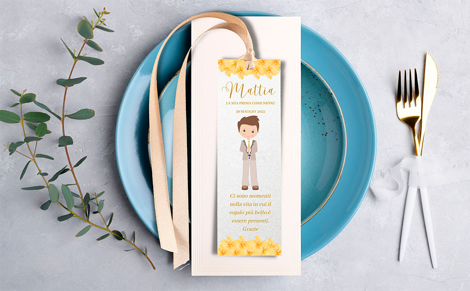 I Segnaposto Comunione bimbo sono l'ideale per rendere speciale il giorno più importante del vostro bambino che compie la sua Prima Comunione! Segnalibro Prima Comunione oppure segnaposto: questo segnalibro con matita è un pensierino originale ed elegante per i tuoi ospiti DIMENSIONI: 4,8 cm X 15 cm e fiocco in raso realizzato a mano di circa 15cm di lunghezza. Figurone assicurato con degli addobbi per cerimonie e decori tavoli d'eccezione. Grazie ai 25 segnaposti comunione organizzerai la tua tavola elegantemente per una cerimonia di classe per il tuo bambino che festeggia la sua Prima Comunione. Elegante design luxury per cerimonie di classe, con i segnaposto fai da te organizzerai gli invitati in maniera originale in onore del giorno più importante da condividere con chi conta! Potrai scegliere tra una vasta selezione di bomboniere comunione bambino e bambina per ringraziare i tuoi amici e parenti per essere presenti in questo giorno speciale. Decora con gusto il posto dei tuoi invitati al ristorante con questo fantastico segna posto per tavolo comunione. PERSONALIZZA ORA: Segnaposto Comunione Personalizzabile con il Nome del Bambino e la data dell'evento attraverso la funzione PERSONALIZZA ORA. MATERIALE: Segnaposto Comunione realizzato su cartoncino Lucido Metallizzato 250gr molto spesso. Bomboniere Comunione Bambino Segnaposto Prima Comunione, Segnalibro Segnaposto, Cartoncino Segnaposto, Segnaposto Con Cuore, Segnaposto Comunione, Prima Comunione Bimba - Italia Bomboniere Comunione Bambina Fiocco in raso elegante e luminoso apposto a mano al cartoncino in modo naturale e chic. Per una tavola reale 👸 🤴 - Le migliori decorazioni per tavola, gli invitati si sentiranno speciali per un banchetto degno dell'occasione, organizza le festività al meglio, grazie ai cartellini segnalibro comunione potrai organizzare in anticipo la tua tavola per un evento da ricordare!