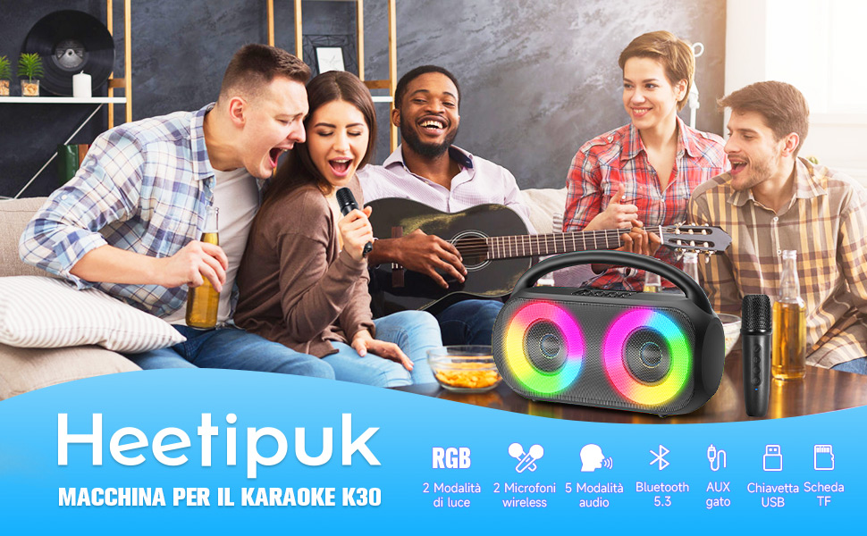【Divertimento Portatile, Ovunque e Sempre】: Porta la tua festa karaoke ovunque grazie alle sue dimensioni tascabili (4,1 x 2 x 2,8 pollici) e alla maniglia comoda. Goditi duetti e performance di gruppo senza interruzioni con la rimozione della voce e sei effetti sonori divertenti (Originale, Modalità KTV, Femminile, Maschile, Bambino, Magia) che aggiungono eccitazione e creatività a ogni canzone. Le migliori offerte per Mini Karaoke Macchina per Bambini Adulti, Bluetooth Portatile Con 2 Microfoni Se sono su Confronta prezzi e caratteristiche di prodotti nuovi e usati Molti articoli con consegna gratis Karaoke Per Bambini Macchina Per Con 2 Microfoni Senza Fili, Macchina Karaoke Portatile 【Macchina Karaoke Versatile】: Non è solo una macchina karaoke, ma anche un potente altoparlante wireless con tecnologia Bluetooth 5.0. Riproduci musica senza interruzioni dal tuo telefono o direttamente da una scheda TF, rendendola ideale per cantate spontanee e feste improvvisate. Rendi ogni occasione memorabile con il regalo della musica e dell'intrattenimento. 【Esperienza Audio di Alta Fedeltà】: Vivi un audio cristallino e bassi profondi grazie al diaframma a bassa frequenza avanzato e al processore di segnale digitale. 【Regala Gioia, Condividi Memorie】: Adatta a bambini dai 3 ai 12+ anni e agli adulti, questo regalo combina stile e funzionalità per amanti della musica di tutte le età. 【Delizia con Doppio Microfono】: Trasforma qualsiasi incontro in una vivace festa karaoke con la nostra mini macchina karaoke portatile dotata di due microfoni wireless.