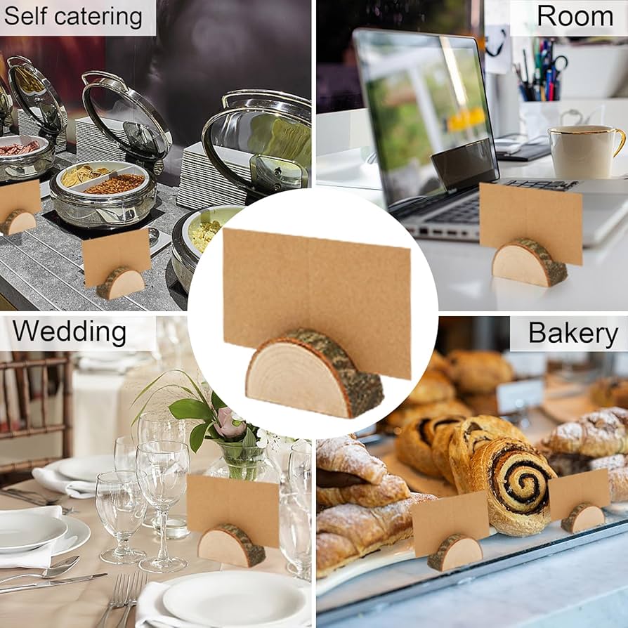 DECORAZIONI RUSTICHE PER FESTE: Che tu stia pianificando un matrimonio a tema vintage, desideri un ristorante dall’aspetto naturale o semplicemente cerchi decorazioni uniche per le feste, questi faranno al caso tuo. Un numero di pezzi più che sufficiente per soddisfare le vostre esigenze quotidiane. Segnatavolo Per Matrimonio YouYuer 12PCS Segnaposto Legno Portafoto Segnaposto Matrimonio Originali Con 20 Cartoncini Per Numero Tavolo Porta In Ceppo Legno Biglietti Per Segnaposto In Legno Usato SEGNAPOSTI MATRIMONI ED ETICHETTE: Un fantastico set composto da segnatavolo matrimonio in legno e cartoncini artigianali. Riceverai 20 stand e 30 carte ✔ Ogni porta biglietti in legno è realizzato in legno naturale con la corteccia sui lati per dare un design autentico. MATERIALE IN LEGNO NATURALE: Realizzato in legno naturale con corteccia e dotato di una fessura ordinata nella parte superiore, stile elegante e artistico, ha una grande durata. CONTENUTO DEL PACCO: Riceverete 20 pezzi di porta carte da tavolo in legno da matrimonio e 20 Kraft. ✔ Perfetto per la decorazione di matrimoni, feste, ufficio o casa. Questo prodotto accattivante catturerà l'attenzione dei tuoi ospiti, aggiungendo un tocco di creatività e stile al tuo evento. Evoca totalmente il fascino della natura con questi segnaposto in legno. ✔ Come porta carte in legno, questi ceppi possono essere la scelta migliore. Specifiche: Nome prodotto: Segnaposto in legno ✔ Sono ideali per segnaposto, menù, foto, cartoline e molti altri settori. ✔ I nostri segnaposto possono essere utilizzati in molti settori.