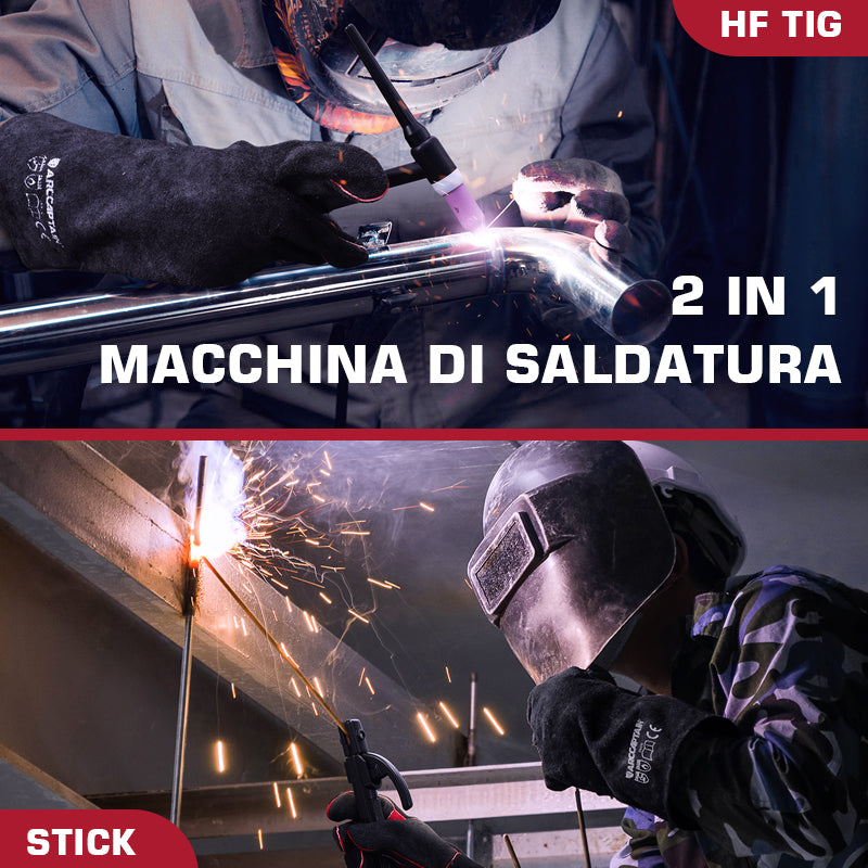 The STAHLWERK ARC 200 Puls Pro is a compact MMA | Lift-TIG welding machine with a real 200 amps. The device has an extensive pulse function in ARC and Lift-TIG mode, which prevents materials from burning through and significantly reduces deformation cause Saldatrice Stahlwerk Lift-TIG Con 200 Ampere, Tecnologia IGBT E Funzione A Impulsi Saldatrice Inverter Elettrodo