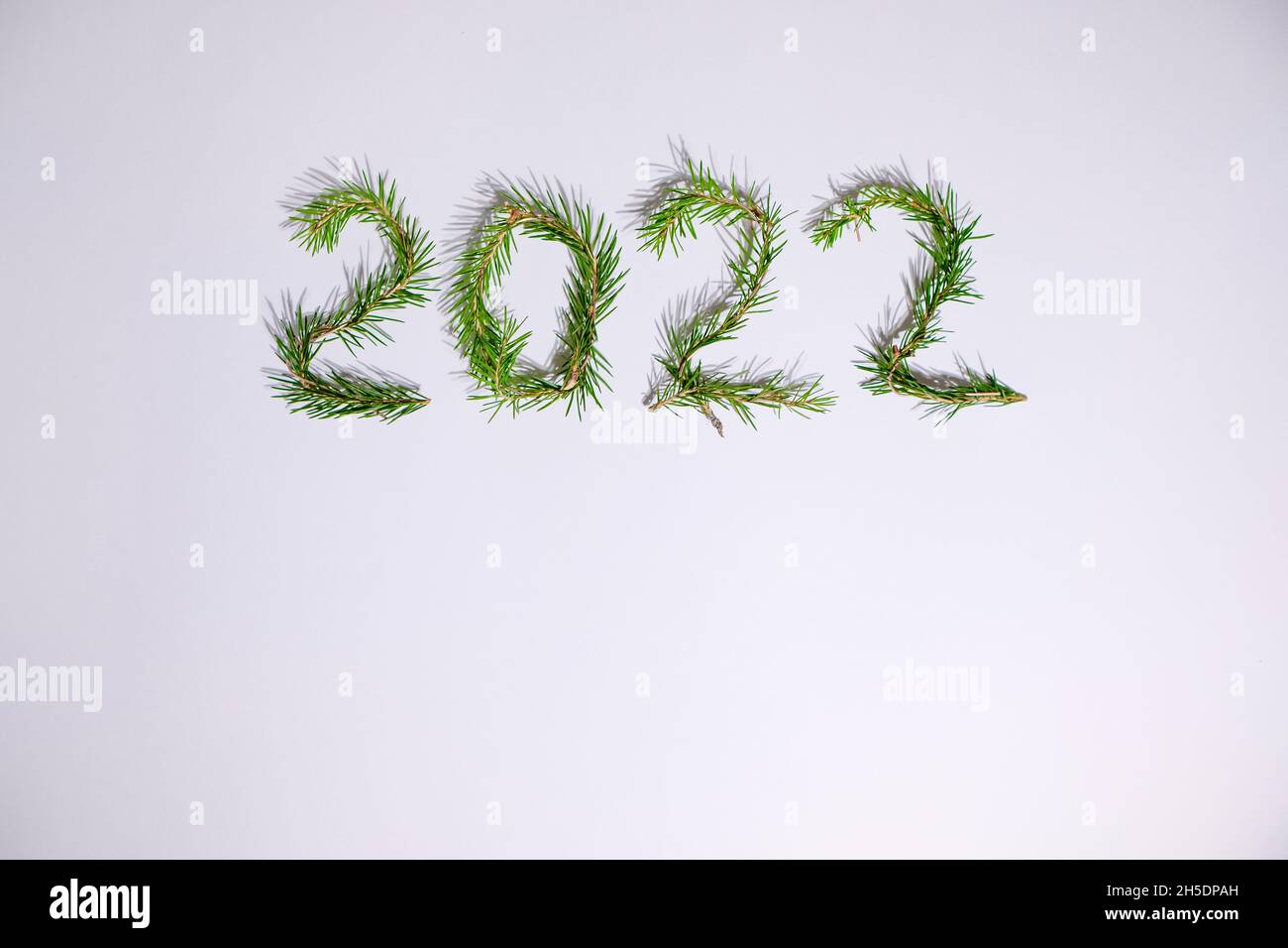 Scatola Luminosa Con 2022 Numeri Fatta A Mano Da Rami Di Albero Di Natale Image450845769