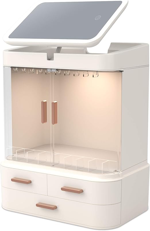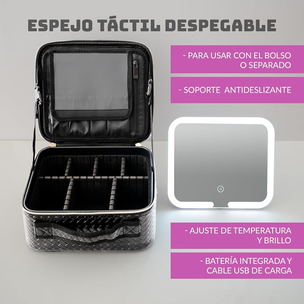ILLUMINAZIONE LED: alta resa cromatica con strato ottico diffuso per un'illuminazione ottimale durante il trucco DESIGN PRATICO: Specchio LED integrato con ricarica settimanale, scomparti multipli e organizer per pennelli da trucco Descrizione prodotto Specifica:- Taglia del prodotto:S (26*23*14 cm)L (37*26.5*12.5 cm)- Materiale: pelle, EVA- Capacità di peso: 11,02 libbre (5 kg)- Peso netto: 2,65 libbre (1,2 kg)- Metodo di oscuramento: oscuramento a tre stop del touch screen- Modal Disponibile in elegante nero, questa borsa cosmetica unisce funzionalità e stile per tutte le tue esigenze di makeup. La superficie è rivestita con una pellicola protettiva che facilita la pulizia dei residui di trucco. CARATTERISTICHE INTELLIGENTI: Pellicola protettiva sulla superficie per facile pulizia, divisori regolabili e tasca per pennelli incorporata MATERIALI PREMIUM: Realizzata in pelle PU resistente con cerniere elettroplaccate antiruggine e hardware durevole Questa elegante borsa cosmetica con specchio LED integrato è l'accessorio perfetto per il tuo makeup. Lo specchio illuminato richiede una sola ricarica settimanale. offre un'illuminazione ottimale per un trucco impeccabile. Specchio Trucco Relaxdays Organizer Make-Up Con 21 Scomparti, Contenitore Per Cosmetici Organizer Borsa
