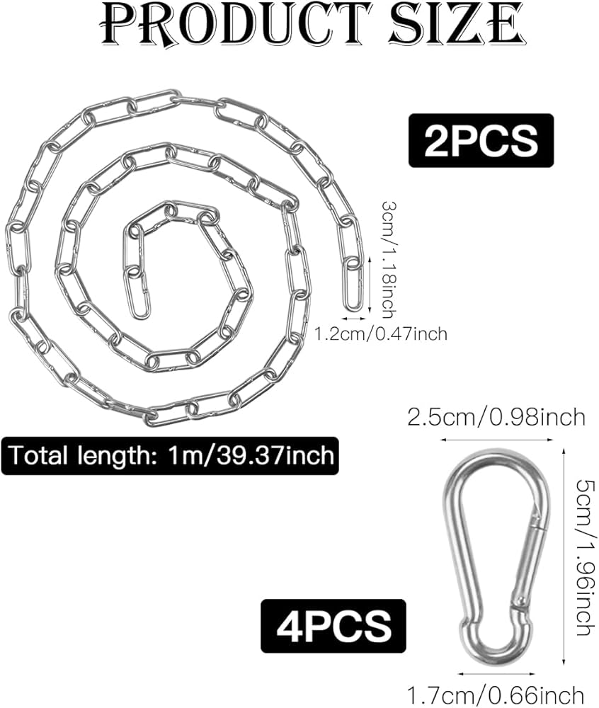 2 PCS 304 Catena In Acciaio Inox Con 4 Moschettone, 1M Catena Per Vestiti In Acciaio Inossidabile, Catena A Maglie Tonde Per Appendere Sedie, Amache, Sacchi Di Sabbia : Amazon.it: Giardino E Giardinaggio