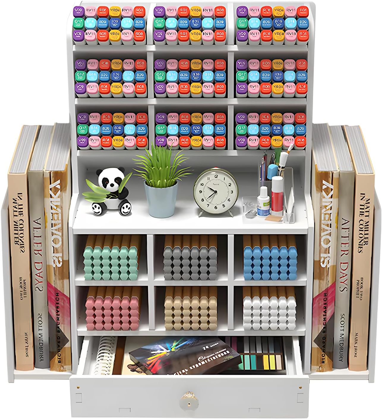 Organizzatore Da Ufficio Per Scrivania, Organizer Con 4 Ripiani E Cassetto Scorrevole Per