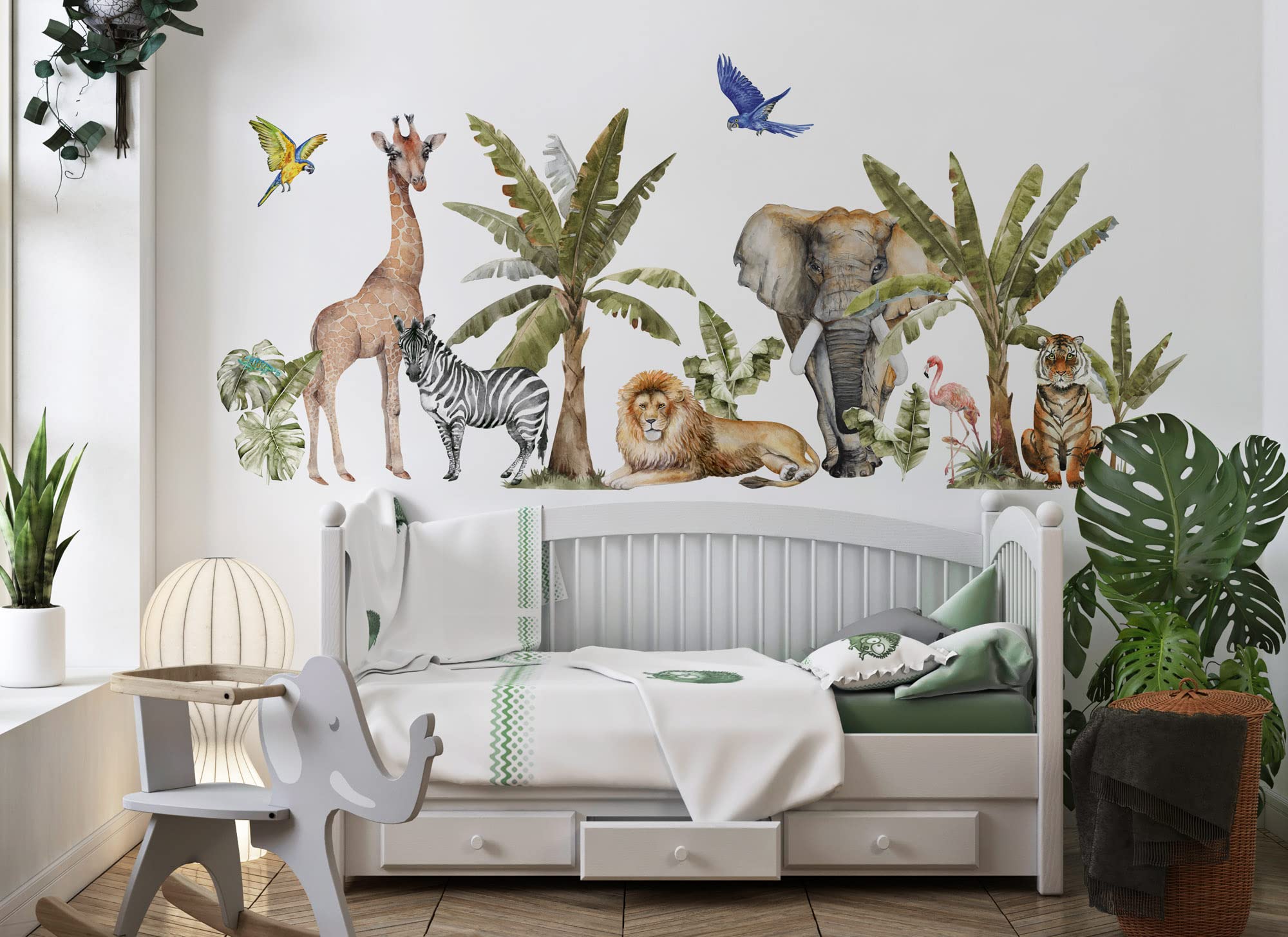 Adesivi Da Parete Con Albero E Animali Della Giungla, Adesivi Da Parete Con Animali Della Giungla, Adesivi Da Parete Rimovibili Arcobaleno, Elefante, Giraffa, Safari, Per Bambini, Ragazzi, Ragazze