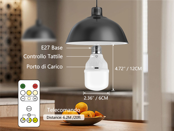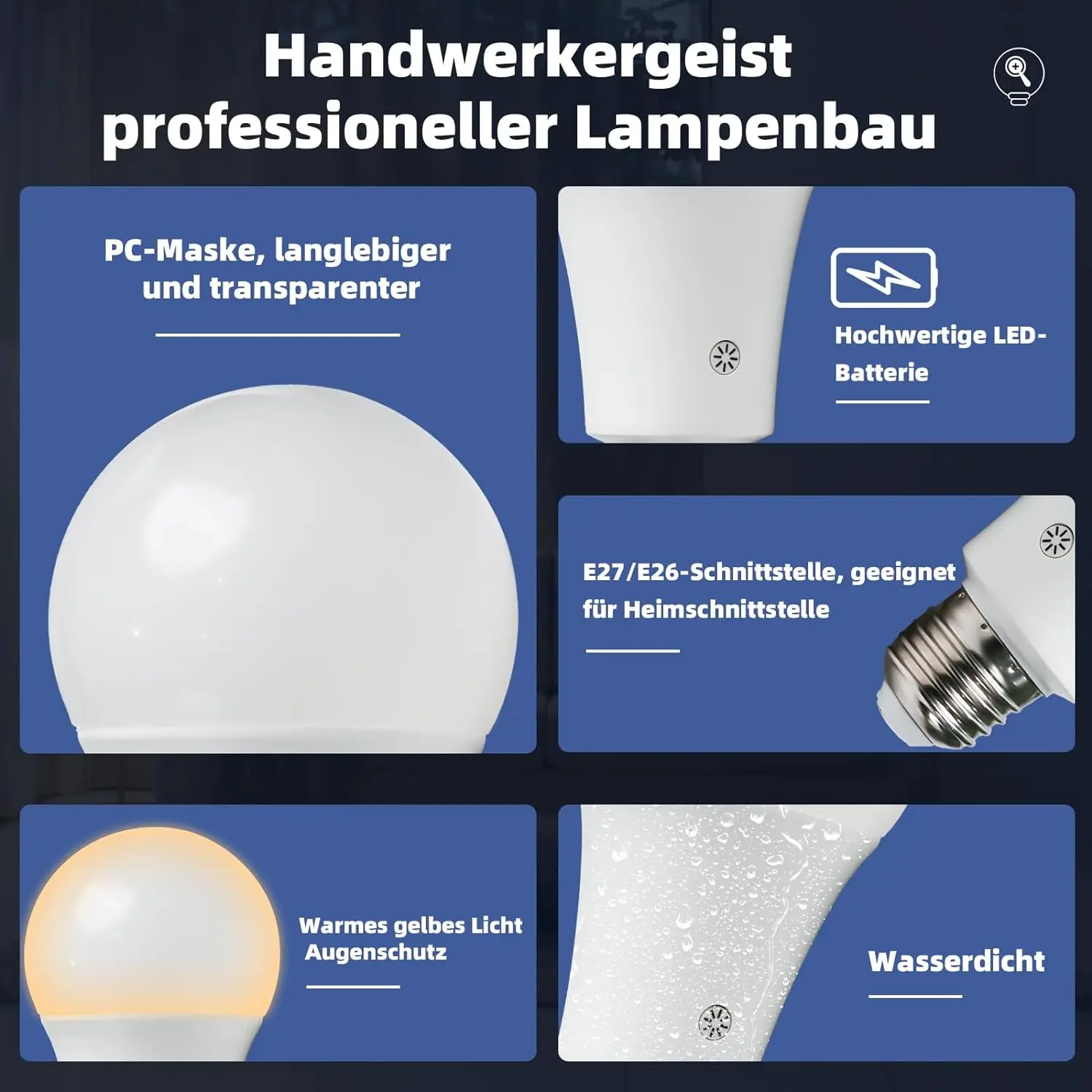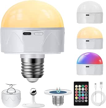 Lampadina Led E27 Elrigs Lampadina E27 Con Batteria, 7W Lampadina A LED Ricaricabile Con Batteria Da 2500 MAh, Luce Bianca Neutra (4000 K), Luce Di Emergenza, Confezione Da 2 Lampada Per Bottiglia 💡【Lampadina ricaricabile USB】Nuovo design creativo, lampadina alimentata a batteria, utilizzare il cavo di ricarica USB di tipo C incluso per caricare la lampadina, batteria al litio super-capacità da 2600 mAh, la ricarica richiede solo 6-8 ore e può durare fino a 20 pz Ora. Acquista Lampadina ricaricabile USB-C con telecomando 5V 7W E27 Lampadina a batteria intelligente Lampadine LED dimmerabili con controllo touch con temporizzazione su Aliexpress per . Trova altri prodotti 39, 390402 e 150402 💡【Lampadina a LED con telecomando】La lampadina senza fili è controllata dal telecomando e la luce può essere accesa/spenta tramite il telecomando e la luminosità della lampadina può essere regolata in modo continuo (10% -100% ), e ha anche una funzione timer (15min-30min-60min), adatto per l'uso in una varietà di scenari per soddisfare le diverse esigenze 💡【Servizio clienti al 100%】38 perline LED di alta qualità, possono emettere fino a 700 lumen, che equivale a una lampadina tradizionale da 60W. I nostri prodotti vengono forniti con un servizio di garanzia di 1 anno, si prega di acquistare con fiducia, se avete domande, non esitate a contattarci via e-mail. Può essere utilizzato in combinazione con lampade da parete, lampade da tavolo, lampade da terra, lampadari, plafoniere, ampiamente utilizzate in interni, esterni, campeggio, agriturismo, garage, fienile, campeggio, viaggi, ecc. In situazioni di emergenza, come durante interruzioni di corrente, tempeste, uragani, ecc.