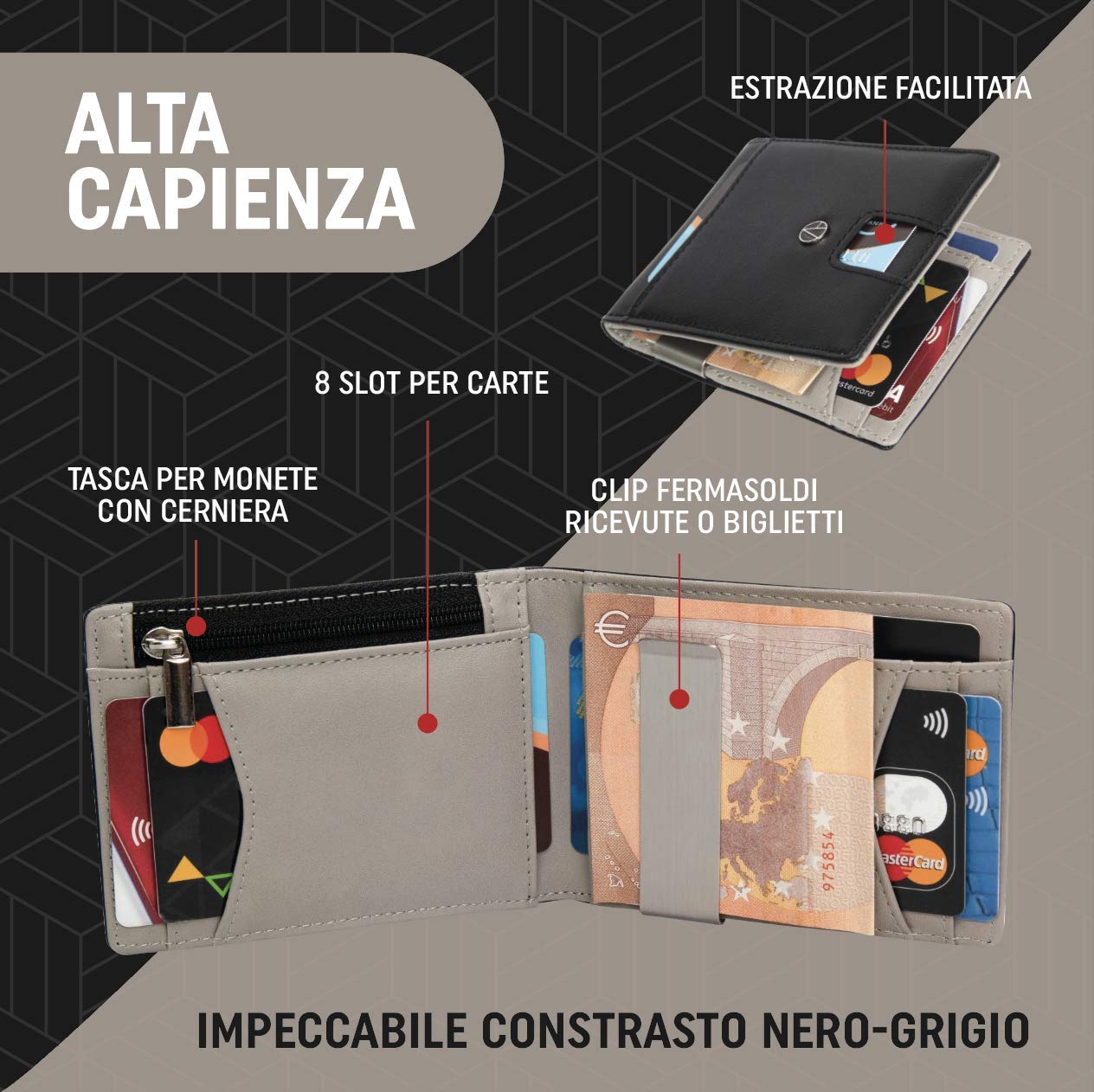 Portafoglio In Pelle Con Blocco RFID Sottile A 8 Slot Porta Carte D
