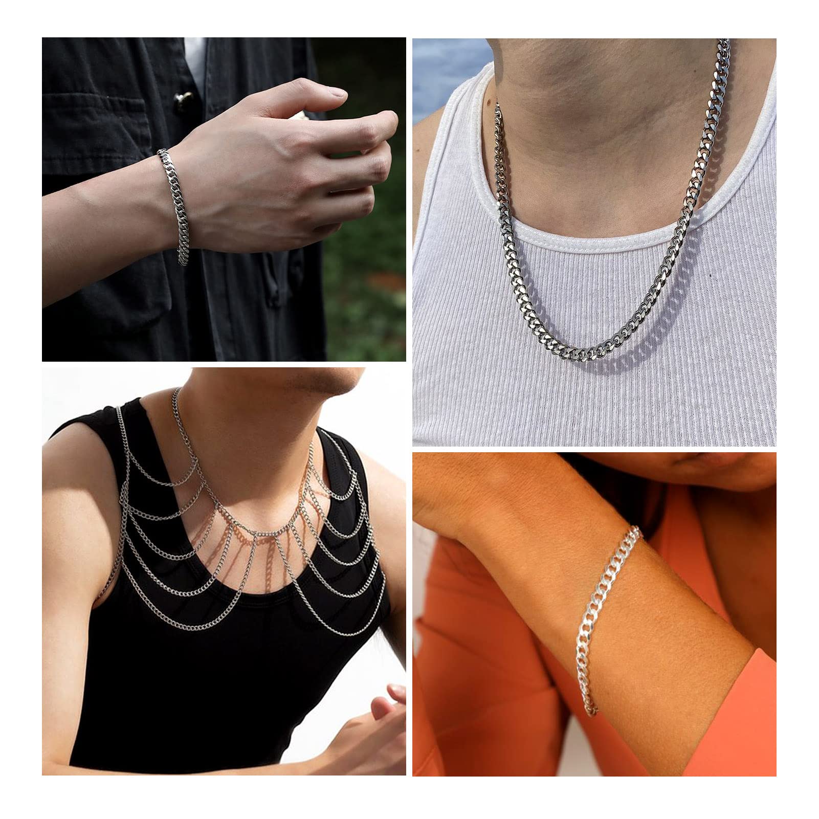Collana Da Uomo In Acciaio Inox Con Catena Accessori, Gioielli Hip Hop Oro/Argento Argento