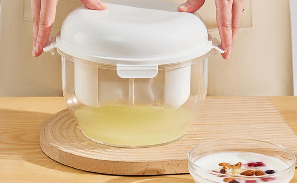 Yogurtiera Per Colino Per , Con Cestello In Rete Ultra Fine E Molla A Yogurt Greco [Processo semplice] Basta versare lo yogurt, coprirlo e lasciarlo riposare in frigorifero per 24 ore per ottenere lo spessore preferito con facilità. [Colino multifunzionale] Ideale per la preparazione di formaggi o latte di soia; questo colino migliora la tua esperienza di cottura promuovendo un divertente approccio fai da te. Appositamente sagomato per ottenere uno spessore ottimale nello yogurt fatto in casa, cagliata delicata per formaggi morbidi e consistenza liscia in alternative a base vegetale Design compatto: questo yogurt maker è progettato per adattarsi comodamente a qualsiasi frigorifero, consentendo di creare bontà fatte in casa senza sacrificare lo spazio.