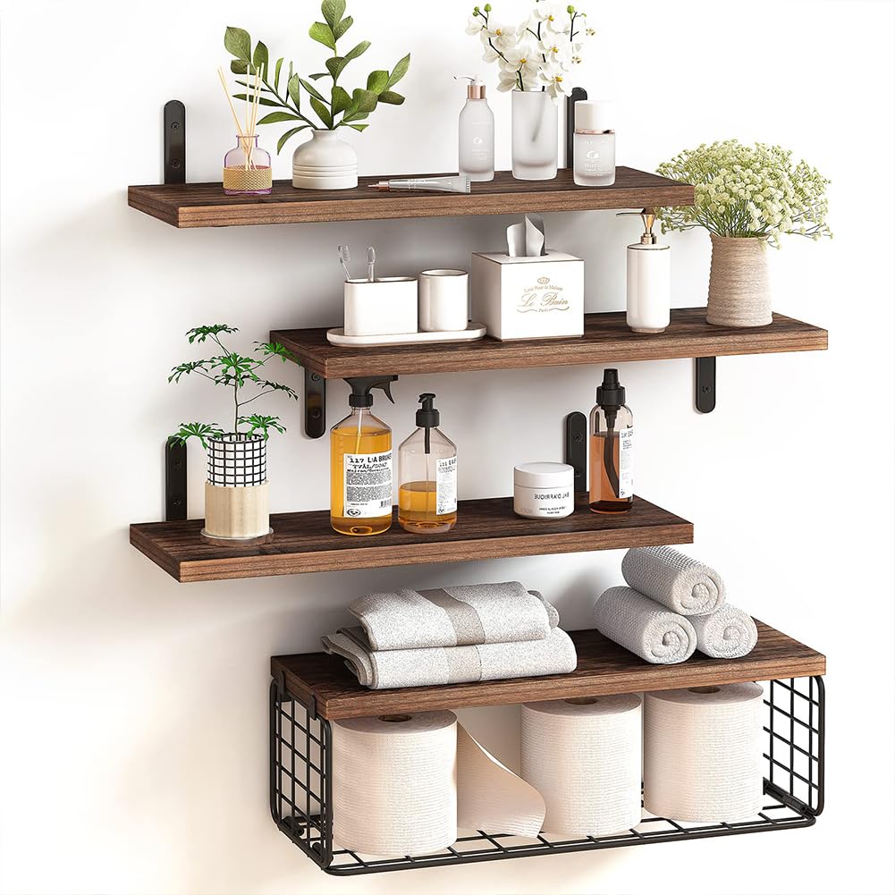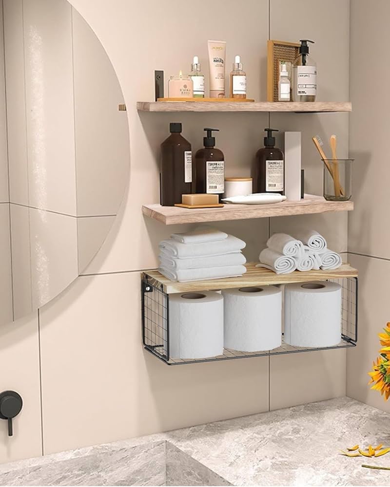 Pipishell Mensole Galleggianti Con Cestino In Filo Metallico, Mensole Galleggianti In Legno Di Paulonia Per Organizzazione Della Casa E Decorazione Da Parete, Per Bagno, Cucina, Soggiorno, Ufficio, : Amazon.it
