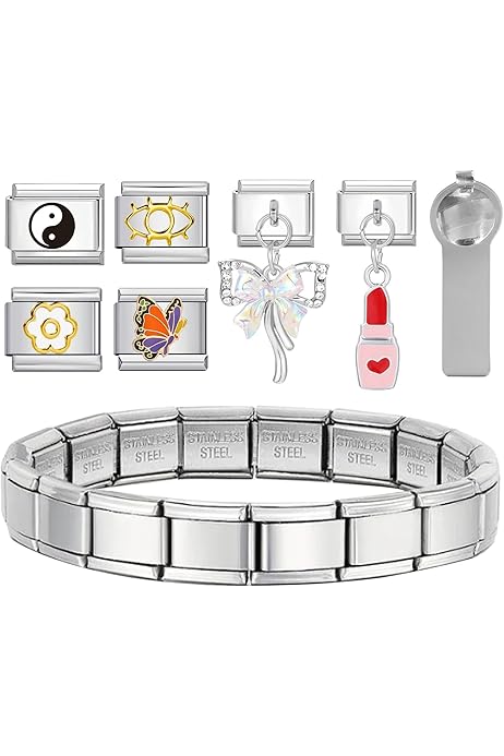 Braccialetto Con Charm Italiano Tradizionale Tipo Classico 9 Mm Braccialetti Con Ciondoli Italiani A Collegamento Modulare Fatto A Mano Fai Da Te Braccialetto Personalizzato Modulo Regalo Di Forma : Amazon.it: Moda
