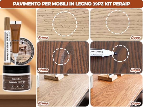 Colori ricchi e unici: 12 colori di pasta per riparazioni: bianco, avorio, legno bianco, grigio, quercia, tronco d'albero, giallo ambra, palissandro, sandalo rosso, teak, nero, noce nero, penna per riparazioni a 12 colori: Nero, grigio, bianco, mogano, acero, quercia, ciliegio, noce, castagno, terra di Siena bruciata, espresso, bambù - questi colori classici si abbinano perfettamente ai vostri mobili o si possono mescolare a seconda delle esigenze. Trasforma i tuoi mobili con il nostro kit di riparazione del legno da 39 pezzi. Facile da usare: Basta premere lo stucco per legno sulla superficie delle aree danneggiate, raschiare l'eccesso con una spatola e attendere che si asciughi, carteggiare con carta vetrata e lucidare con cera lucidante per legno, per far tornare i mobili in legno come nuovi! Dopo la riparazione, asciugare con un asciugacapelli o lasciare asciugare all'aria per 2-3 giorni (non in acqua). Se avete domande o dubbi sul nostro kit di riparazione per mobili e pavimenti in legno, non esitate a contattarci in qualsiasi momento. Scopri la gamma di 12 colori classici per il restauro dei mobili. Ogni kit include anche strumenti come raschietti e spazzole per una riparazione senza sforzo e precisa. Perfetto per tavoli, sedie e altri mobili in legno, il kit è facile da usare per ottenere risultati professionali. Colori Versatili per Ogni Riparazione Il nostro kit di riparazione del legno è progettato per una facile applicazione: stendi lo stucco, raschia l'eccesso, carteggia e lucida. Dal bianco al noce nero, passando per grigio e mogano, troverai il colore perfetto per abbinarsi o mescolarsi con i tuoi arredi. Ampia applicazione: il nostro kit per la riparazione dei mobili in legno può essere utilizzato per crepe, fori, spaccature, graffi, scheggiature e scolorimenti su pavimenti, porte e mobili in legno come tavoli, sedie, letti, armadi, librerie, mobiletti, oggetti di artigianato in legno e molto altro ancora. Compra SEISSO Kit Riparazione Mobili Legno, Pennarello Ritocco Legno, Stucco per Legno, 39 Accessori, Per Riparare i Graffi sui Mobili in Legno, Pavimenti, Armadietti, Piano di Lavoro e Porta a prezzi vantaggiosi su . Spedizione Gratuita disponib Il nostro kit di verniciatura del legno vi offre 12 colori unici e tutti gli strumenti necessari per rinnovare i vostri mobili. Stucco Per Legno Riempitivo Strumenti Per La Riparazione Dei Graffi Con Cigolio Per Pavimenti In Laminato Mobili/Laminato/Armadio Da Cucina/Riparazione Del Piano Di Lavoro Riempore Di Cera Morbida Colla Per Legno Kit professionale per la riparazione del legno: il kit per la riparazione dei mobili da 39 pezzi contiene 12 colori classici di stucco per legno e pennarello per mobili, 1 stucco per legno, 1 olio per cera per legno, 2 raschietti, 4 spazzole, 1 spugna, 1 paio di guanti, 2 carte abrasive, 2 culle per le dita e 1 bicchiere per mescolare. Garanzia di soddisfazione: il nostro kit per la riparazione di mobili e pavimenti in legno farà tornare i vostri articoli in legno come nuovi e non dovrete sostituire i vostri mobili. Descrizione prodotto Riparazioni Impeccabili con il Kit Completo da 39 Pezzi