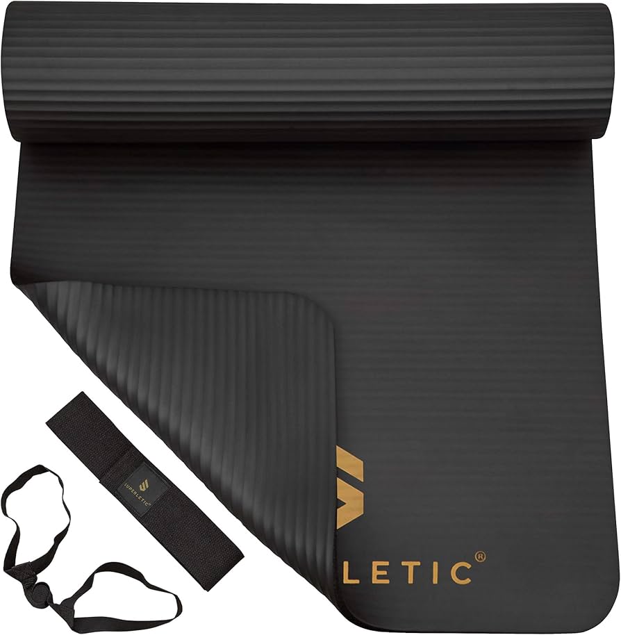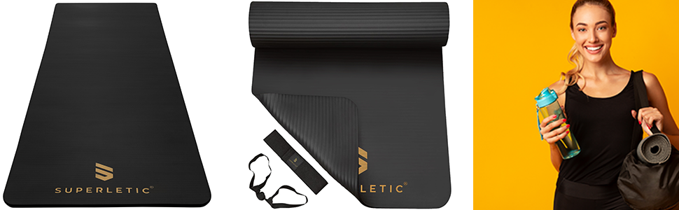 Tappetino Da Yoga Imbottito SUPERLETIC Yoga & Fitness Mat, Antiscivolo Con Cinghia Per Trasporto, Rispetta La Pelle, Tappetino Allenamento & Sport, Spesso & Comodo Per Forza Muscolare, Pilates, Palestra A Casa (183x61x0,5