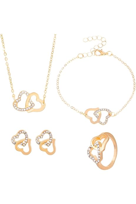 💙 Design unico: la collana con doppio cuore ha due delicati ciondoli a forma di cuore in metallo con cristalli trasparenti scintillanti per farvi brillare. 💜 Simbolo di felicità: i gioielli sono tempestati di cristalli bianchi, i cristalli a forma di cuore simboleggiano la cristallizzazione dell'affetto, dell'amore e dell'amicizia, che contiene l'energia dell'amore; indossando questa collana e gli orecchini, lei sarà la persona più romantica, bella e felice! argento pendente anello ciondolo doppio anelli Parura Di Gioielli Anello Con Ciondolo Cuore In Oro Giallo | - La Tua Bracciale Cuore Nero I gioielli di cristallo a forma di cuore scintillano con una straordinaria lucentezza di cristallo e sono forti e durevoli. Regalandolo a persone diverse si può esprimere un amore diverso. Realizzati in lega galvanizzata e cristalli con dimensioni e tagli precisi che riflettono la luce abbagliante come i diamanti, ipoallergenici, adatti alla pelle sensibile e perfetti da indossare tutti i giorni! Per garantire la durata dei gioielli, si prega di evitare il contatto con acqua, lozioni o profumi. 💚 Set di gioielli a cuore: i gioielli a cuore doppio sono disponibili in due set principali, argento e oro.