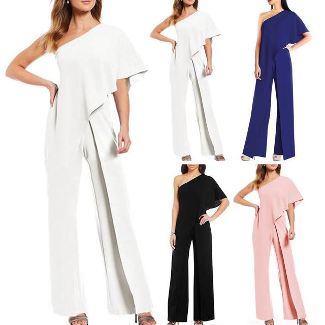 Tuta Lunga A Maniche Corte Con Colletto Inclinato Estivo Da Donna Tuta A Gamba Larga Divisa A Va Alta In Tinta Una