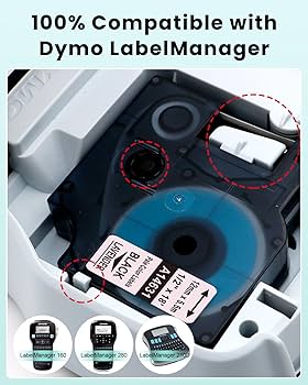6 X Molabel Compatibili Con Dymo D1 Nastro 19 Mm X 7 M 45803 S0720830 Nero Su Bianco, Adatto Per Dymo LabelManager 350, 360D, 420P, 450, 500TS E LabelPoint 300, 350