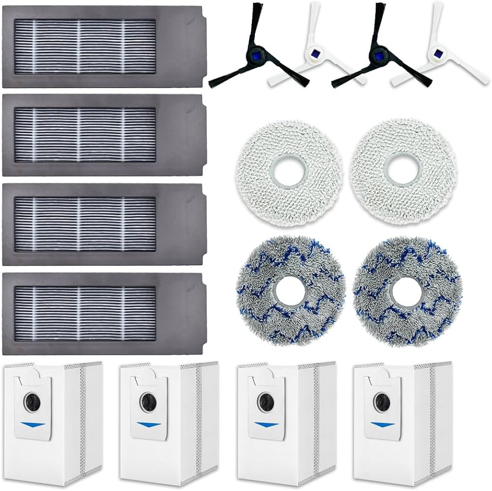 Geoviizon 20 Pezzi Kit Di Accessori Di Ricambio Compatibile Con Ecovacs Deebot T20 Omni (2 Spazzole Principali, 4 Spazzole Laterali, 4 Filtri, 4 Mop, 6 Sacchetti Per La Polvere