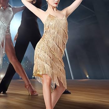 BDXMKS Abito Da Ballo Latino Abito Con Frange Con Nappe Con Paillettes Da Donna Abito Da Ballo Latino Samba Tango Abiti Con Paillettes Femminili