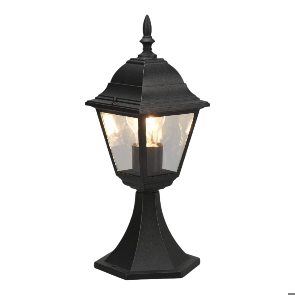 Paletto Con Lanterna Nera Classica - Altezza 39cm, IP44 Per Esterno