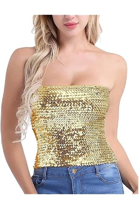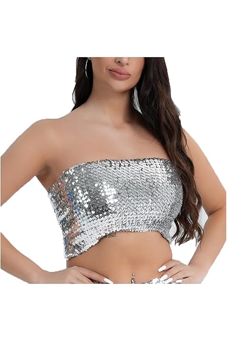 Naimo Top Da Donna Con Paillette Glitterate, Senza Spalline, Senza Spalline, Top Per Feste, Argento, Taglia Unica : Amazon.it: Moda