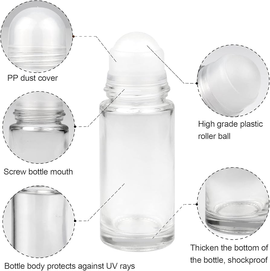 QUUPY 2PZ 30ml/1oz Deodorante Bottiglie Di Vetro Roller Con Plastica Roller Ball Fiale Vuote Del Campione Roll On Bottiglie Container Per Oli Essenziali Leak-proof Massaggio
