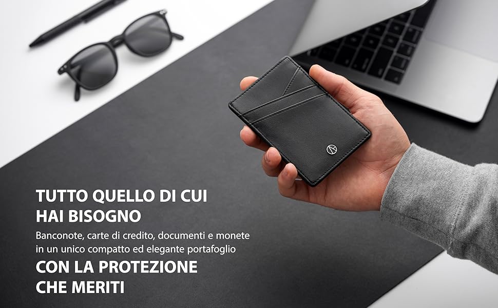 Portafoglio Uomo Slim Con Portamonete, Scomparto Banconote E Porta