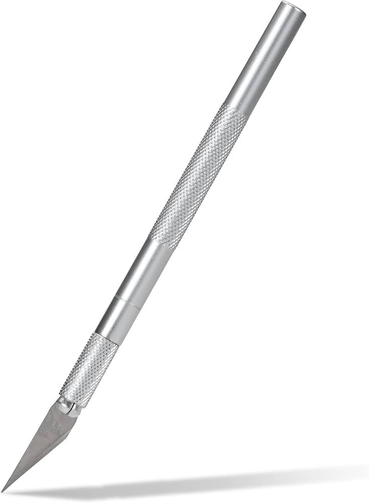 ☑️ Ideale per lavori manuali precisi e lavori di modellismo, nonché per lavori di intaglio, restauri, incisioni su linoleum e molto altro ☑️ 1 coltello artigianale FD-Workstuff + 20 lame di ricambio Lame Per Bisturi Lame Di Bisturi Con Pratico Manico In Metallo │ 1 Pezzo │ Lungo: 12 Cm, Largo: 1 Cm │ Di Cui 10 Lame Di Ricambio │ Coltello Artigianale │ Cutter Di Pasta Di Zucchero Coltello in alluminio di alta qualità Il nostro coltello è realizzato interamente in alluminio. Il coltello con 20 lame di ricambio ☑️ Puoi trovare altri coltelli e lame artigianali nel nostro negozio online Lame di Bisturi con Pratico Manico in Metallo │ 1 pezzo │ lungo: 12 cm, largo: 1 cm │ di cui 20 lame di ricambio │ Coltello Artigianale │ Cutter di Prezisione │ by FD-Workstuff Chiusura rapida semplice per cambiare rapidamente la lama Per sostituire le lame, il coltello ha una chiusura a scatto. Ciò semplifica la sostituzione delle lame. ☑️ Taglio senza sforzo grazie alle lame estremamente affilate