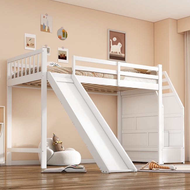 Caratteristiche del prodotto SOLUZIONE DI STOCCAGGIO: L'unità portaoggetti integrata con asta per asciugare è perfetta per appendere i vestiti e riporre gli oggetti essenziali. Le scale sono inoltre dotate di una griglia in rete che può essere utilizzata La robusta scala è dotata di gradini antiscivolo per un accesso facile e sicuro al letto a soppalco ed è stata progettata appositamente per bambini e adolescenti. Scale portaoggetti - Ogni livello delle scale è dotato di cassetti integrati e piccoli armadietti aggiuntivi, fornendo un facile accesso e molto spazio per vestiti, giocattoli e altri elementi essenziali per organizzare la stanza. Spazio ottimizzato: il letto a soppalco alto crea spazio extra sotto il letto, perfetto per un'area di lavoro, un'area giochi o uno spazio aggiuntivo, ideale per sfruttare al meglio una piccola camera da letto. Il letto può sostenere fino a 120 kg. Scala Per Soppalco Letto A Soppalco 200x90 Moimhear Letto A Soppalco 90x200 Cm, Con Scala Di Sicurezza, Spazio Per Riporre Gli Oggetti E Piccolo Armadio, Scaffali, Design Con Recinzione Alta, Letto Singolo, Letto Per Ragazzi Letto A Soppalco Matrimoniale Recinzione alta: la recinzione alta intorno alla zona notte garantisce sicurezza da cadute accidentali e garantisce tranquillità a genitori e bambini.
