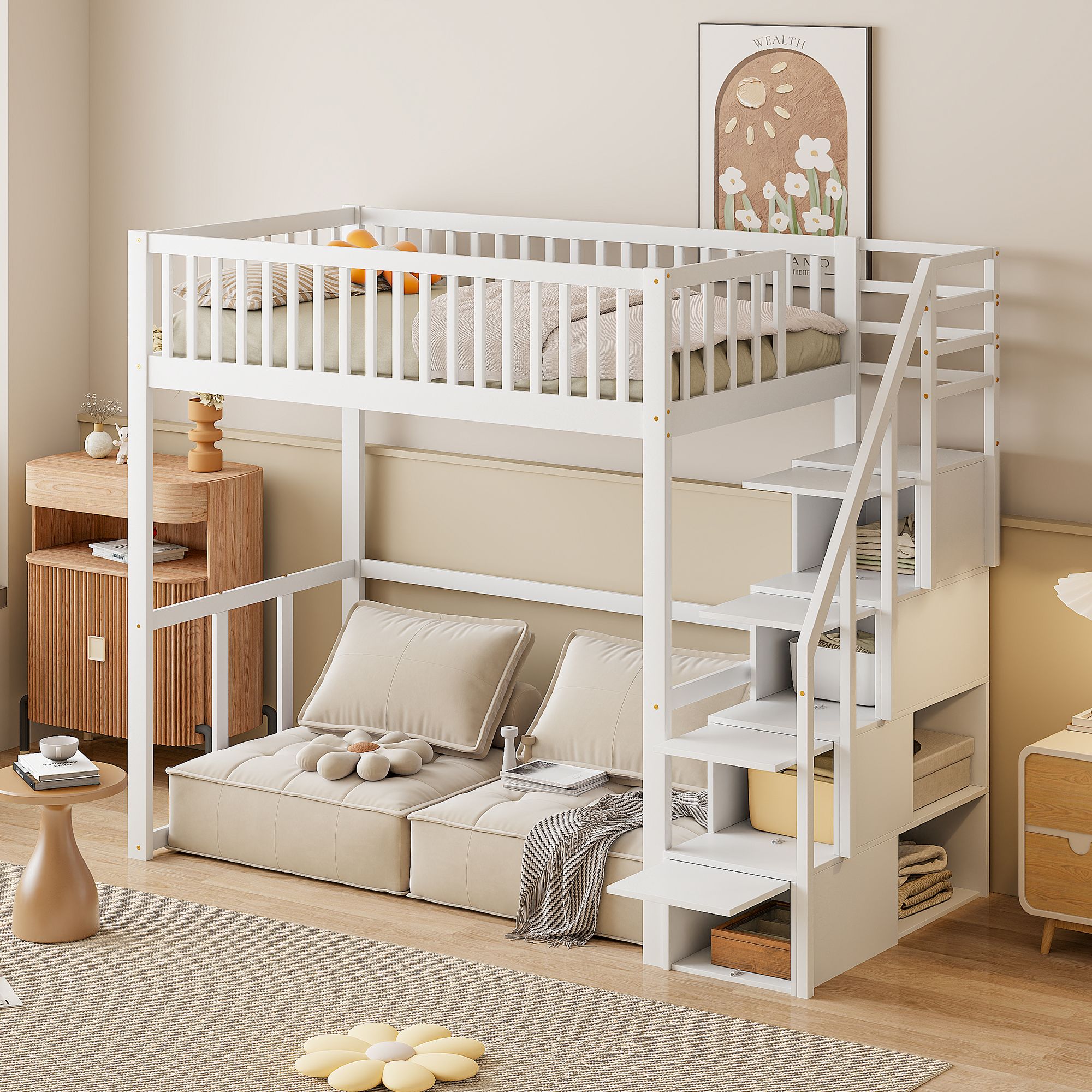 Letto A Soppalco 200x90 Moimhear Letto A Soppalco 90x200 Cm, Con Scala Di Sicurezza, Spazio Per Riporre Gli Oggetti E Piccolo Armadio, Scaffali, Design Con Recinzione Alta, Letto Singolo, Letto Per Ragazzi