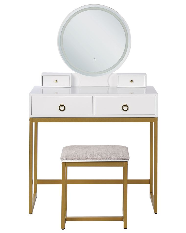 Tavolo Da Toeletta Con Specchio Toeletta Trucco Con Specchio Illuminato A LED, Tavolo Da Trucco Con Sgabello Imbottito, Moderna Postazione Trucco