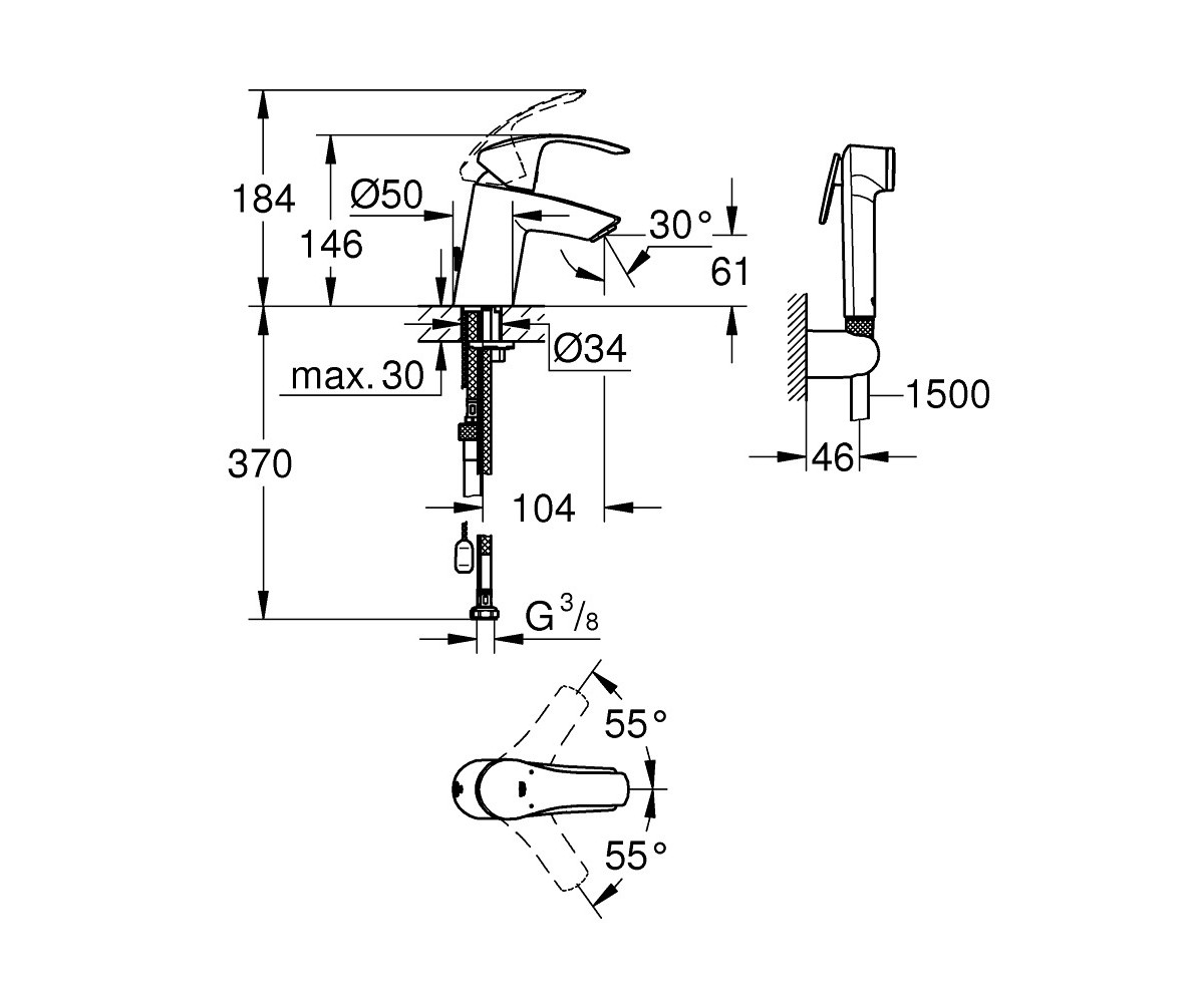 Eurosmart-Lavabo Con Teleducha Per Bidet, 23) 124 002 [Vecchio