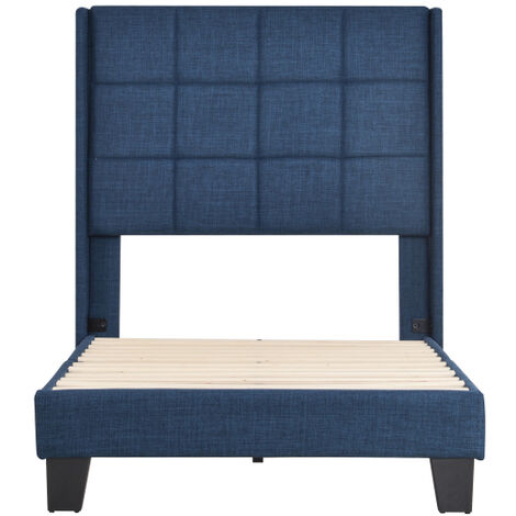 Letto Imbottito Dal Design Moderno Con Testiera Imbottita Letto Singolo Con Rete A Doghe 90x200 Cm In Lino Blu Semirigido Senza Materasso Okwish 86189244