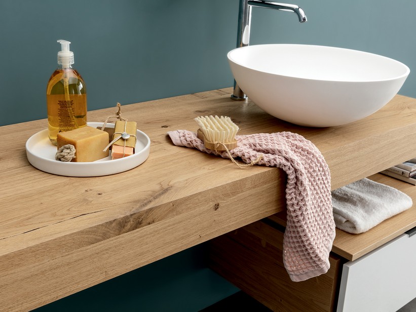Lavabo Sospeso Con Top HPL 100cm Vasca Sinistra Rovere Naturale - Jalama