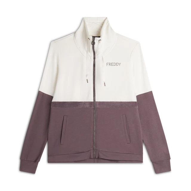 FREDDY - Felpa Donna Con Zip E Collo Alto Con Interno Paisley, Donna, Bianco, Extra Large