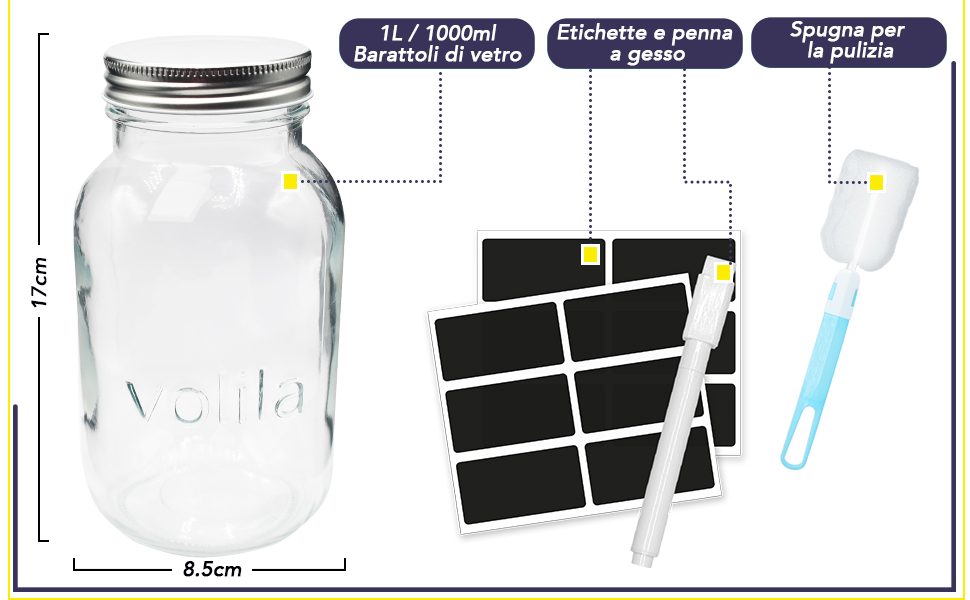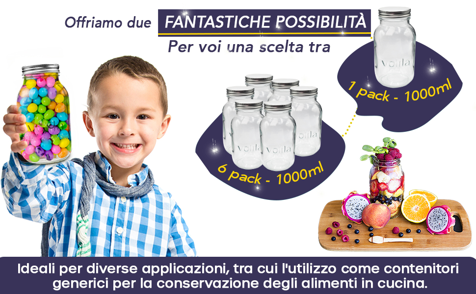 🍌【 Multiproposito 】 I barattoli vetro per conserve puo i utilizzare i nostri barattoli di vetro per stratificare il tuo dessert preferito. Puoi anche pensare fuori dagli schemi e utilizzare i nostri barattoli mason con bocca larga per realizzare le tue candele fai-da-te. MASON JAR 1L,BARATTOLI Di Vetro Con Coperchio Barattoli per La Fermentazione,L'I - EUR 27,99. IN VENDITA! DESCRIZIONE: Vasetti Multifunzionali: la dimensione da 1000 ml è il miglior 226108661146 Può anche essere utilizzato per conservare gli avanzi. 🍒【 Set Di 6 Da 1L 】 Viene venduto in un set di 6, questi vasetto vetro ono alti circa 17 cm e hanno una base di 8,5 cm. Se hai qualche problema con il prodotto, per favore inviaci un messaggio! 🍯【 Garanzia 】Questo set di barattolini vetro piccoli con tappo ha una garanzia al 100%! 🍓【 Nuovo E Migliorato! Questi barattoli vetro conserve da 1L sono realizzati con il miglior materiale in vetro al sodio calcico, ideale per preparare la tua avena da lasciare in ammollo, la preparazione dei pasti, i sottaceti, la conservazione alimentare e le bevand 】 I nostri barattoli vetro con coperchio piccoli ora hanno un'imballaggio migliorato che assicura che ogni boccaccio sia saldamente chiuso. Barattoli Ball Mason Jar MASON JAR - Confezione Da 6 Barattoli In Vetro Da 490Ml Per Barattoli Vetro
