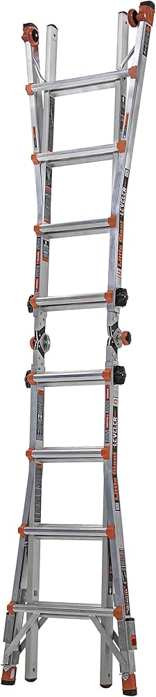 Little Giant – umwandelbare Leiter mit 2 verstellbaren Stützen, 4-7 Stufen. Zugang 5,53 m – Leveler M17. Der Little Giant Leveler ist leichter, einfacher zu bedienen und vielseitiger als jede Skala seiner Klasse Leveler Prezzi Scala Multiposizione Little Giant Conquest PRO - 4x5 Gradini 16332EN 018 89026368 Little Giant Leveler Ladder Riferimento 16517 Altezza massima in scala 218 cm Altezza mini a scala 132 cm Altezza massima in estensione destra 44 cm Altezza in estensione destra 146 cm Altezza piegata (in posizione di stoccaggio) 139 cm Larghezza base 61 cm Profondità (in posizione di stoccaggio) 21 cm Altezza massima di accesso in scala 337 cm Altezza di accesso in scala 580 cm Peso 15 kg