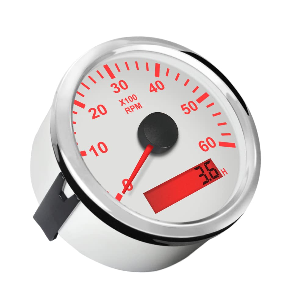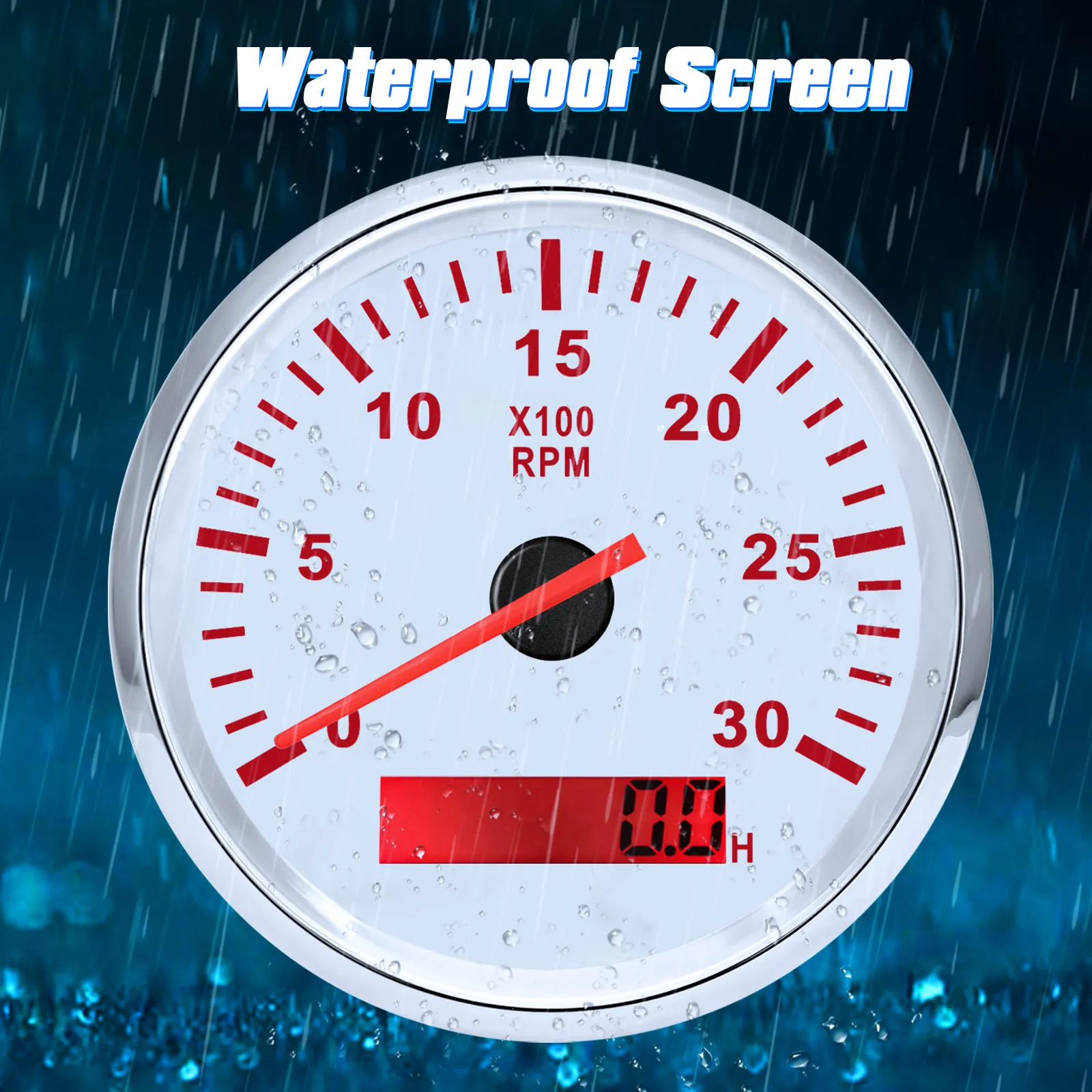 Contagiri Auto Contaore Moto Contagiri Marino Da 85 Mm Con Contaore LCD IP67 3000 Giri/min Tachimetro Retroilluminazione Rossa Per Auto Camion Barca Contagiri Moto Termometro Motore 2 Tempi Ampia applicazione: il misuratore del tachimetro impermeabile è adatto per navi, pescherecci, yacht, macchinari fuoribordo e altri tipi di veicoli acquatici. Preciso: il contagiri dell'imbarcazione può visualizzare con precisione la velocità del motore 0‑3000 giri/min, con un intervallo di visualizzazione del contaore 0‑99999,9 ore, la retroilluminazione rossa è di facile lettura. Contagiri di alta qualità ---- L'indicatore del contagiri è realizzato con una lunetta in acciaio inossidabile 316L e vetro curvo antiappannamento, che può essere utilizzato a lungo anche in ambienti acidi e umidi. IP67 impermeabile , può funzionare 1 m s Prestazioni eccellenti: produzione professionale, pregevole fattura, IP67 impermeabile e antipolvere, possono essere utilizzate in ambienti difficili.