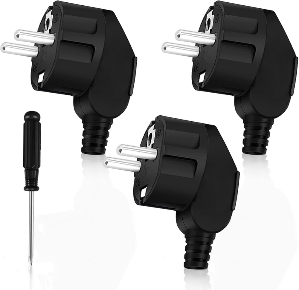 Oblinple 2 Pezzi Europea Spina Schuko Maschio, Spine EU Con Contatto Di Protezione Con Manicotto Antitorsione Presa Elettriche Di Alimentazione 250V 16A Per Cavo 6-16mm, Infrangibile, Nera : Amazon.it: Fai Da Te