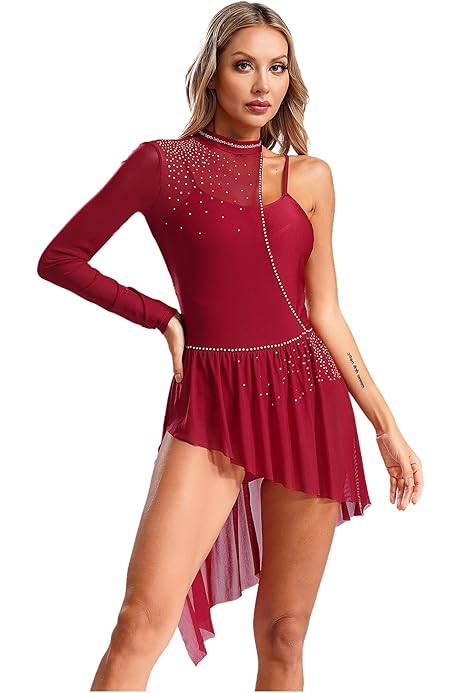 Body Per Pattinaggio Artistico ROYAL SMEELA Vestito Donna Abito Da Ballo Contemporaneo Abiti Ballo Moderno Abito Ballo Lirico Costume Danza Moderna Adulto Gonna Gradi 720+Body Classica Costume Danza Contemporanea Danza Classica Abito da ballo donna in chiffon smanicato, colore solido, chiusura con cerniera Super morbida e traspirante, sensazione di tocco morbido, comodo da indossare Vestito da pattinaggio artistico da donna, body con paillettes glitterate, monospalla, maglia trasparente, maniche lunghe, abiti da ballo ; Caratteristiche Spalline elastiche e corpetto superiore, 2 strati di chiffon asimmetrico