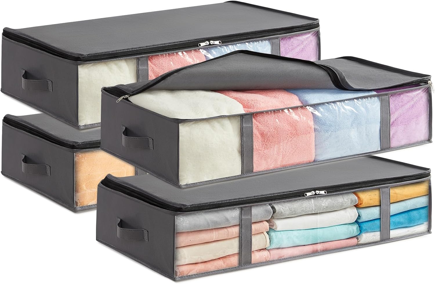 Lifewit 4 Pezzi 90L Contenitori Sottoletto, Scatole Vestiti Con Finestra Frontale Trasparente